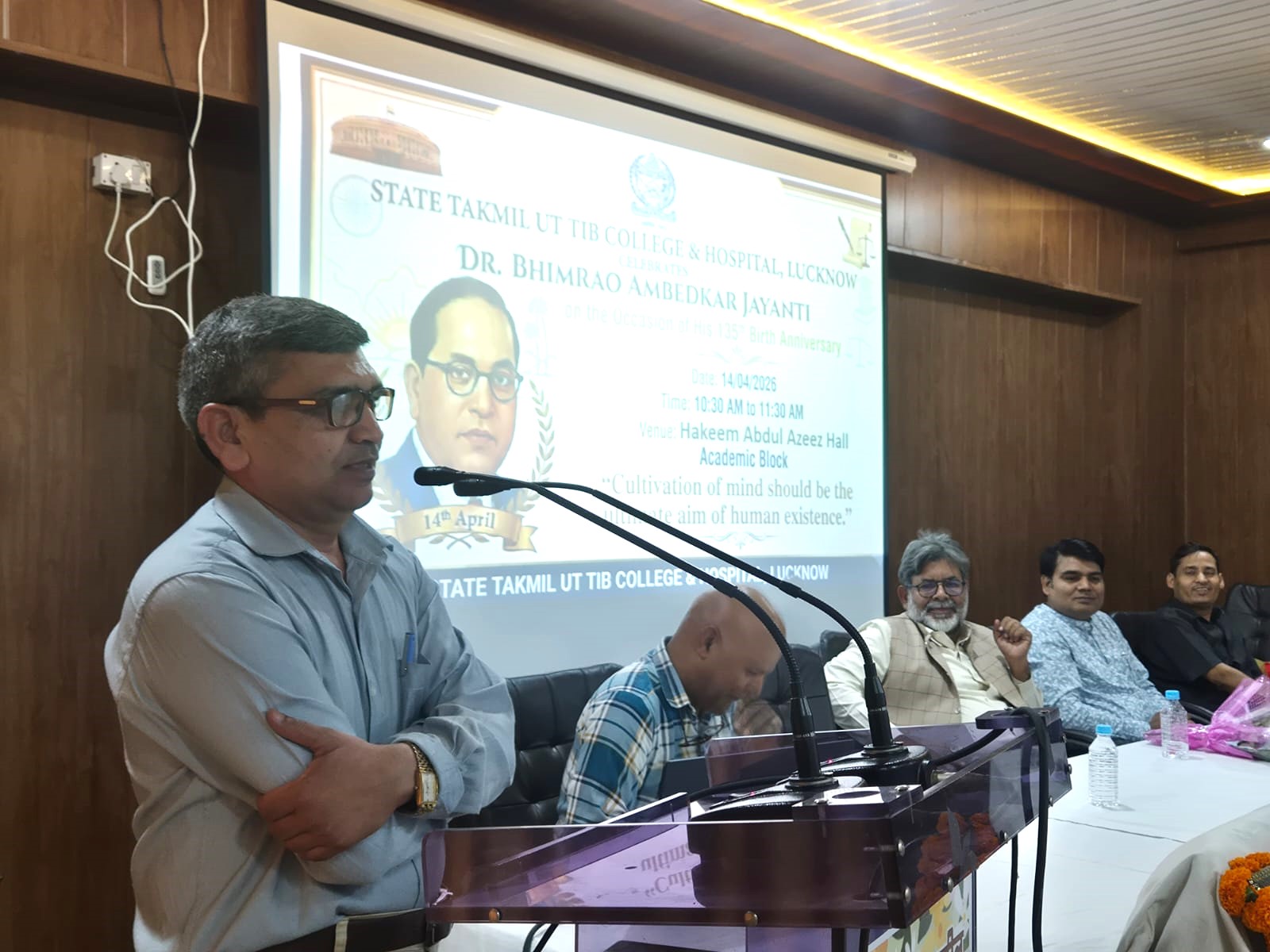 : A solemn and inspiring event was आयोजित at Government Takmeel-ut-Tib College and Hospital to mark the 135th birth anniversary of Dr. B.R. Ambedkar. The कार्यक्रम took place at Hakim Abdul Aziz Hall, witnessing enthusiastic participation from students, faculty, and distinguished guests.