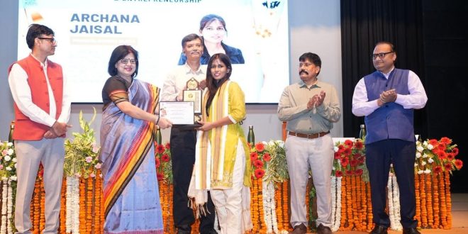 Additionally, Janjatiya Shilp Pvt. Ltd. was acknowledged for preserving heritage handicrafts, Sangeeta from Daulat Grih Udyog for food processing innovations, and Dr. Rajneesh Verma for advanced work in animal IVF and human stem cell research at the global level.