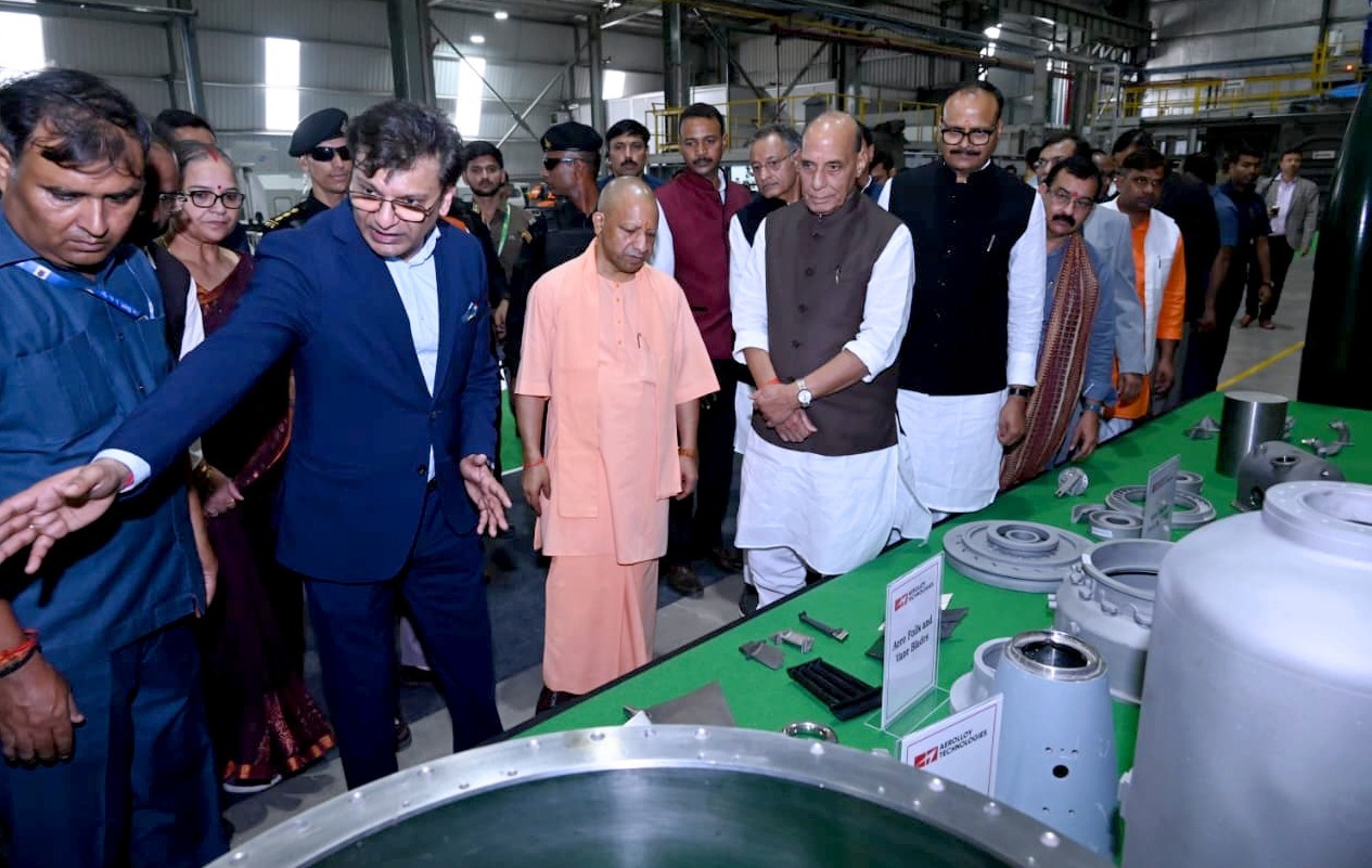 रक्षा मंत्री श Rajnath Singh के साथ #UPCM Yogi Adityanath ने लखनऊ में PTC इंडस्ट्रीज का भ्रमण किया एवं Titanium & Superalloys Materials प्लांट के लोकार्पण कार्यक्रम में सम्मिलित हुए।