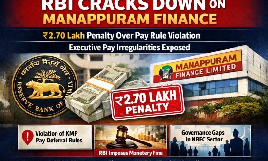Leading non-banking financial company Manappuram Finance Limited has come under regulatory fire after Reserve Bank of India (RBI) imposed a monetary penalty of ₹2.70 lakh for violating key compliance norms related to executive compensation. The action has raised fresh concerns about governance standards and regulatory discipline within the NBFC sector.