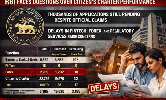 Fresh data released by the Reserve Bank of India (RBI) regarding the status of applications processed under its Citizen’s Charter has sparked concerns about delays and operational inefficiencies within the country’s central banking system.