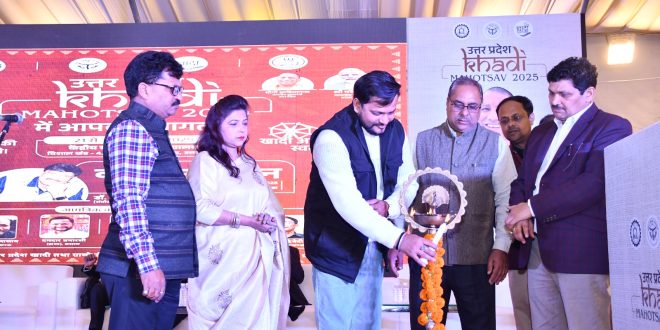 उत्तर प्रदेश खादी एवं ग्रामोद्योग बोर्ड द्वारा केन्द्रीय संस्कृत विश्वविद्यालय, गोमती नगर, लखनऊ में आयोजित खादी महोत्सव-2025 में गुरुवार को सांस्कृतिक संध्या ने दर्शकों को मंत्रमुग्ध कर दिया। मुख्यमंत्री योगी आदित्यनाथ के मार्गदर्शन में स्वदेशी, स्थानीय उद्यमिता और युवा स्वावलंबन को बढ़ावा देने के उद्देश्य से आयोजित यह महोत्सव आज सातवें दिन नई ऊंचाइयों को छूता दिखाई दिया। खबर लिखे जाने तक प्रदर्शनी में बिक्री का आंकड़ा लगभग 1.28 करोड़ रुपए पार कर गया।