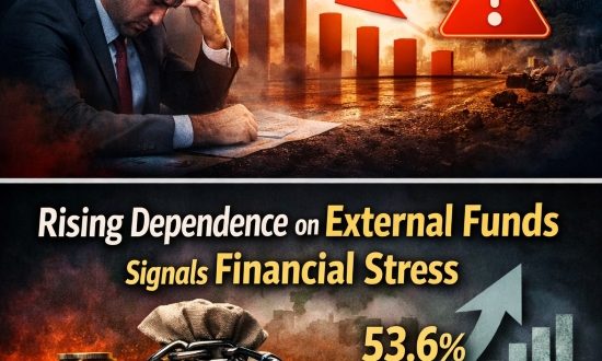 More alarming is the rising reliance on external funding. Data sourced from the Ministry of Corporate Affairs shows that the share of external funds has climbed to 53.6%, reflecting increased dependence on liabilities and short-term obligations.