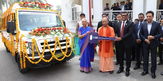 The bus was flagged off by Honorable Governor of Uttar Pradesh, Smt. Anandiben Patel and Honorable Chief Minister of Uttar Pradesh, Shri Yogi Adityanath in the presence of Shri Dipak Kumar De, Chief General Manager, State Bank of India.