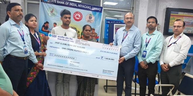 Reaffirming its unwavering commitment to railway personnel, State Bank of India – Miya Ganj, Unnao Branch handed over a cheque of Rs 1 crore to the family of a deceased railway employee under the Personal Accident Insurance (PAI) claim of the Railway Salary Package.
